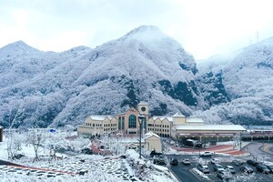 장쾌하고 다부진 오봉산 줄기를 따라 눈꽃이 환하게 피었다. 험준한 산악지대를 지그재그로 오르는 스위치백트레인을 타고 바라본 설산은 가히 하얗다 못해 푸르다. 삼척 하이원추추파크는 철도테마 리조트로, 국내 유일의 스위치백트레인과 옛 영동선 철길을 굽이굽이 돌아 내려오는 산악형 레일바이크, 키즈카페와 체험형 실내 동물원, 독채형 리조트 시설을 두루 갖춰 동화 같은 기차 마을 여행지로 꼽힌다. 스위치백트레인은 1963년 첫 개통 이후 2012년 6월 솔안터널이 완공되면서 50년의 역사로 마감해야 했지만, 하이원추추파크에서 스위치백 구간을