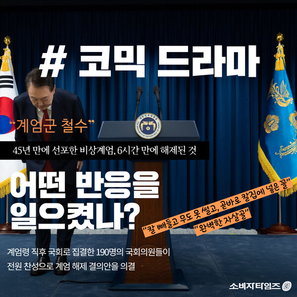 [카드뉴스] ‘비상계엄’ 긴박했던 6시간의 드라마 #공포 #멜로 #코믹 #스릴러 김길태 기자 hmknews@daum.net 기자의 다른기사 보기 SNS 기사보내기 페이스북(으)로 기사보내기 트위터(으)로 기사보내기 URL복사(으)로 기사보내기 기사스크랩하기 다른 공유 찾기 현재위치 [만평] 입력 2024.12.12 16:12 댓글 0 인쇄 본문 글씨 키우기 가 본문 글씨 줄이기 이 기사를 공유합니다 페이스북(으)로 기사보내기 트위터(으)로 기사보내기 URL복사(으)로 기사보내기 닫기 저작권자 © 소비자타임즈 무단전재 및 재배포 금지 SNS 기사보내기 페이스북(으)로 기사보내기 트위터(으)로 기사보내기 URL복사(으)로 기사보내기 기사스크랩하기 다른 공유 찾기 김길태 기자 hmknews@daum.net 저작권자 © 소비자타임즈 무단전재 및 재배포 금지 개의 댓글 회원로그인 작성자 비밀번호 댓글 내용입력 댓글 정렬 최신순 추천순 답글순 BEST댓글 BEST 댓글 답글과 추천수를 합산하여 자동으로 노출됩니다. 닫기 더보기 댓글삭제 삭제한 댓글은 다시 복구할 수 없습니다. 그래도 삭제하시겠습니까? 비밀번호 닫기 댓글수정 댓글 수정은 작성 후 1분내에만 가능합니다. 본문 / 400 비밀번호 닫기 내 댓글 모음 닫기