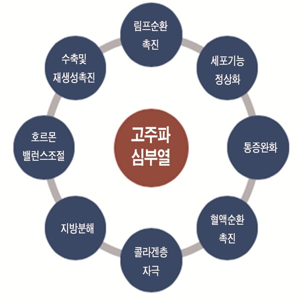 닥터셀 고주파를 사용하면 몸 온도를 상승시켜 한기를 없애고 땀을 배출한다. 체온은 우리 몸에서 가장 중요하다. 체온이 1도 내려가면 면역력은 30% 떨어지고 1도가 올라가면 면역력이 5~6배 올라간다. 특히 암세포는 35도의 저체온에서 많이 증식해 닥터셀을 이용해 체온을 올리면 암세포를 막는 면역력이 올라가 암 발생을 늦출 수 있다. 닥터셀 고주파에서 발생하는 열은 심부 깊숙이 생성된 심부 생체 열로 혈액순환이 원활해지고 세포에 더 많은 영양과 산소를 공급해 신진대사를 촉진하고 세포를 활성화한다. 제2의 심장이라 불리는 발부터 장딴지까지 혈액을 펌프질해 줌으로써 혈액순환을 개선해 건강을 지켜준다.